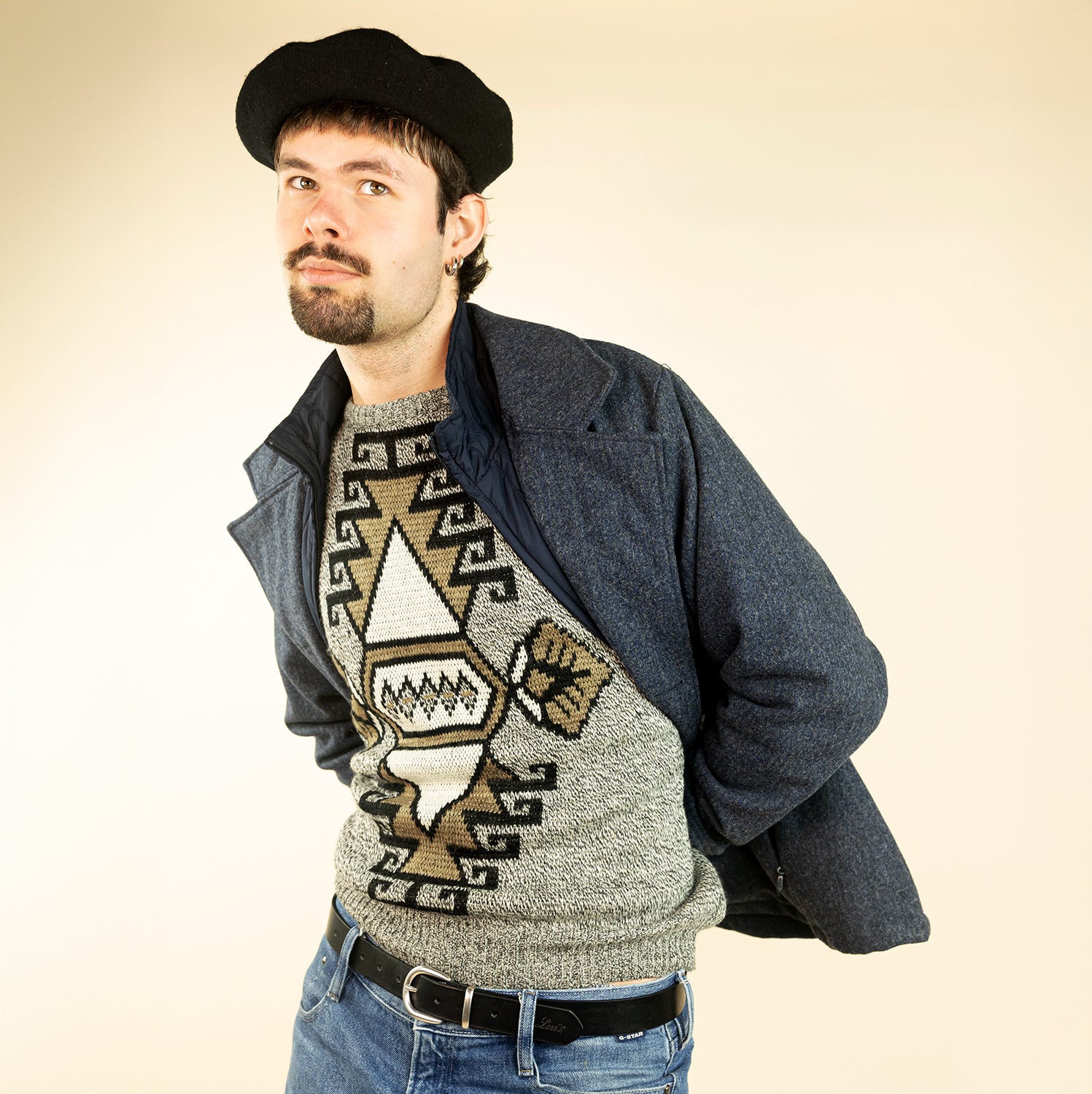 Gilet-pull vintage FRANKALEXS 80s/90s – Chevron jacquard bleu